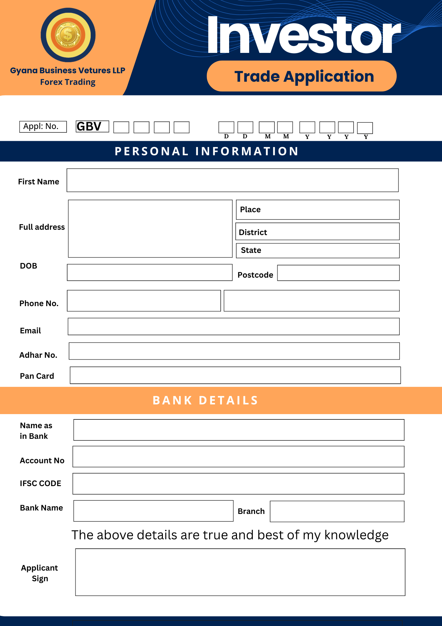 Customer/Client/Investor Application Form